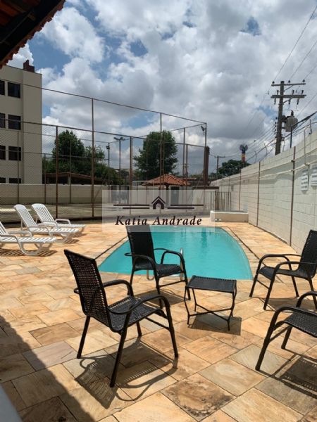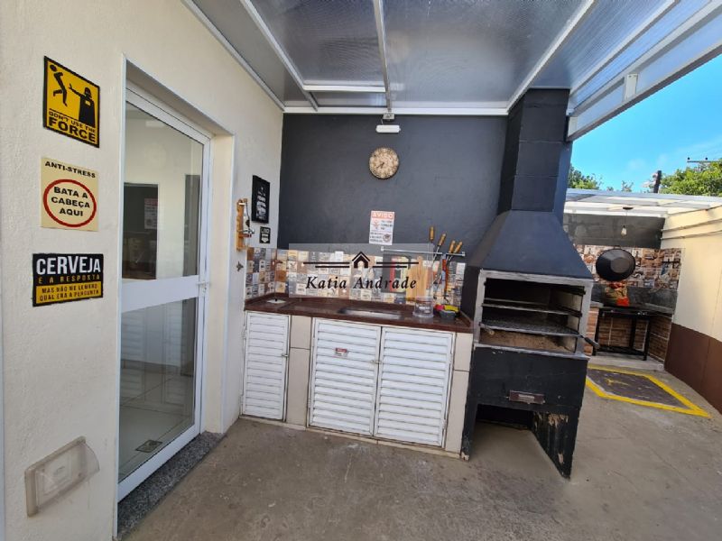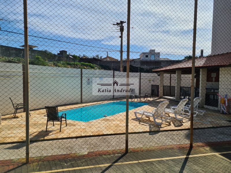 Condomínio com vigilância 24h, área de lazer com piscina, quadra poliesportiva, churrasqueira na piscina e no salão de festas.